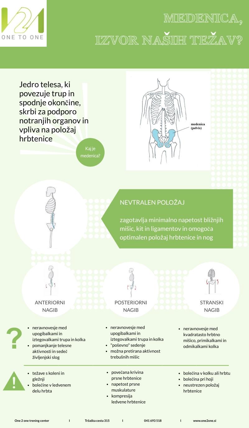 V spodnji infografiki si lahko preberete, kaj lahko povzroči neustrezen položaj same medenice, na vsa vaša vprašanja pa z veseljem odgovorimo na telefonski številki 041 693 518 ali kar na v našem centru na Tržaški cesti 315.